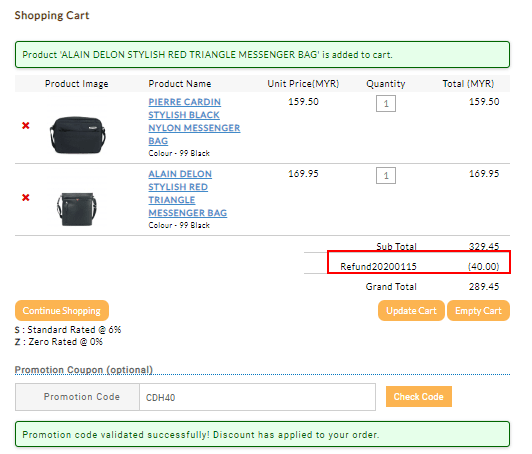 π Walau bagaimanapun, apabila pembelian melebihi RM188 (seperti di atas), kod baucar bayaran balik itu berjaya dipakai.
